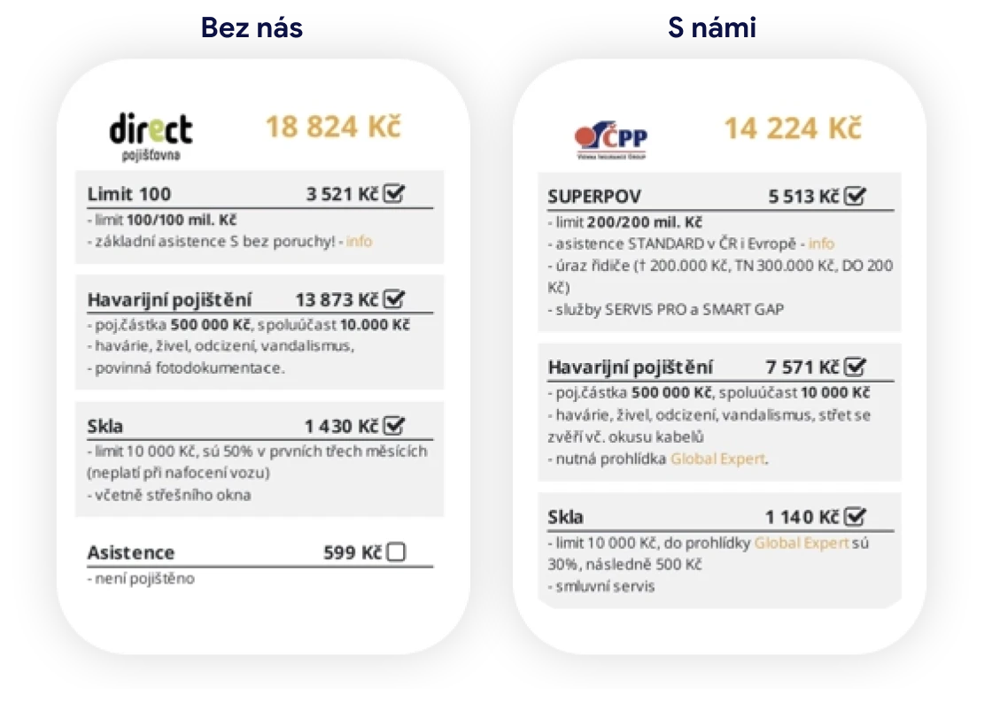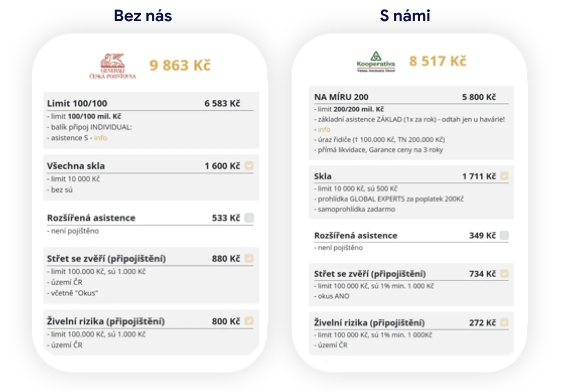 Zprostředkováváme pojištění všech tuzemských pojišťoven. Dokážeme srovnat jejich nabídky v metelesku blesku a tím vám ušetřit tisíce korun!
